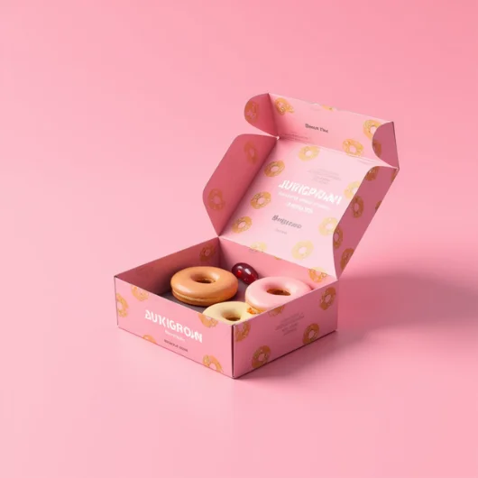Branding goes beyond the item itself. Additionally a powerful branding device is packaging. Pink doughnut boxes can mirror the brand’s character. A delicate pink box betrays gentleness and consideration. A striking pink box represents energy and excitement. Companies can pick the tone that best fits their image. Emotional connection can be produced by printed messages on boxes. Simple phrases like “Freshly Made” or “Made with Love” have a personal resonance. Customers recall these minor points.
